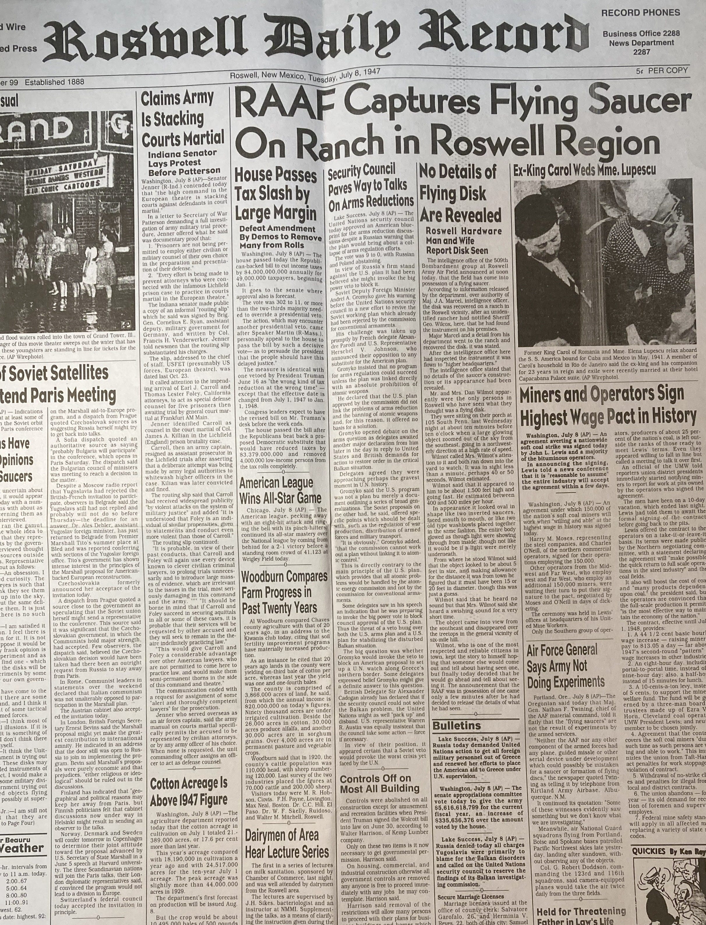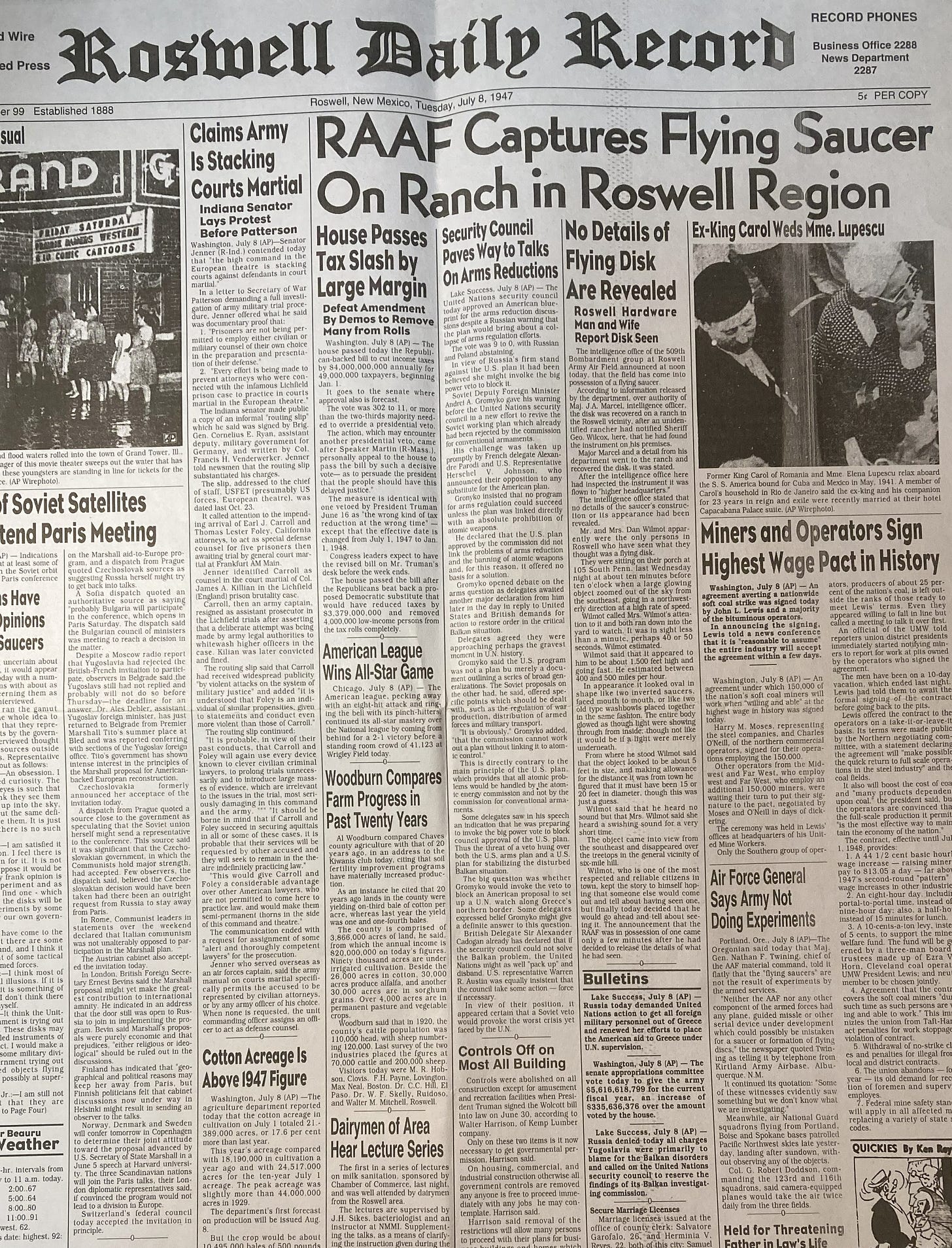 UFO. UFO. UFO. Scott Cooper (dir: Springsteen: Deliver Me from Nowhere) is writing and directing a new film with 20th Century Studios on the supposed alien spaceship craft that crashed in Roswell, NM. Check out the original headline from 1947 above.